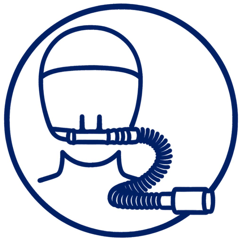 Über eine spezielle High-Flow-Nasenbrille oder einen Trachealdirektanschluss werden die Gase mit Flussraten zwischen 10 – 60 l/min verabreicht.